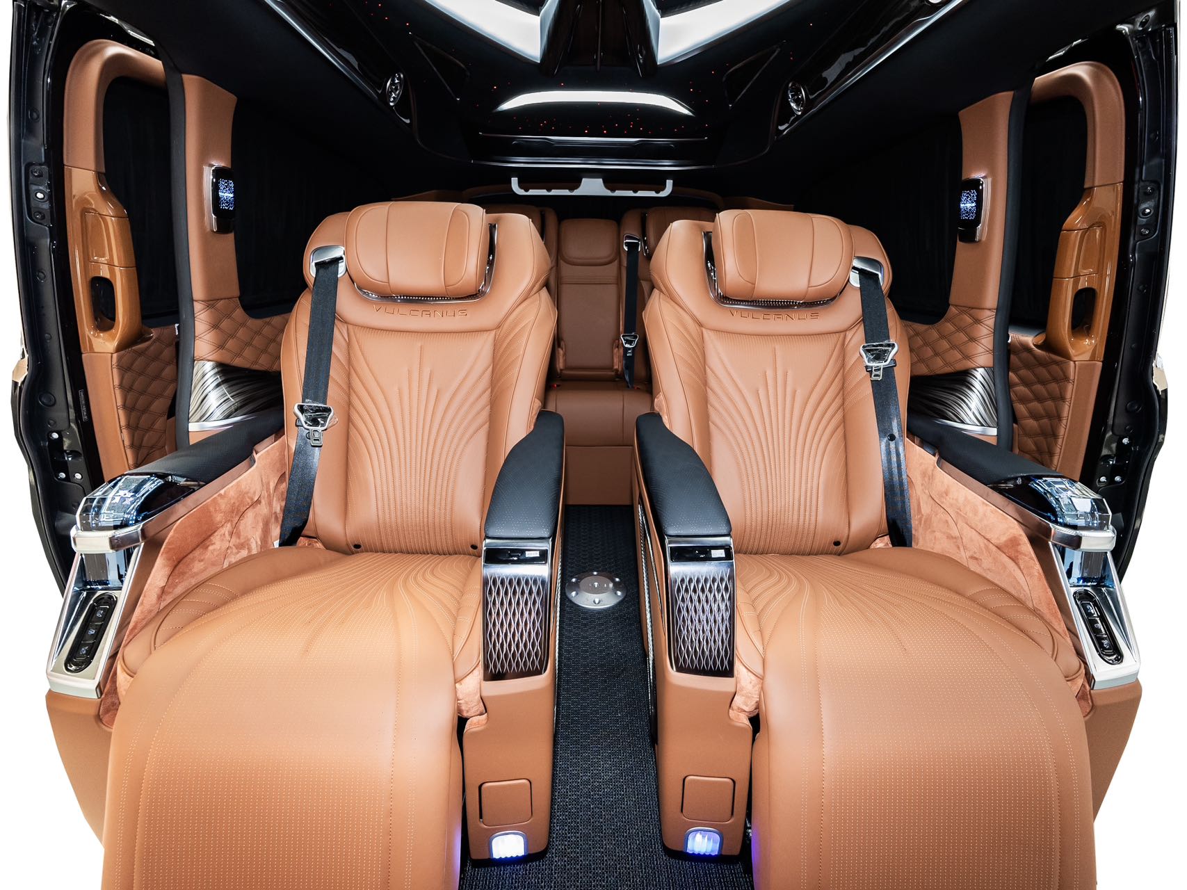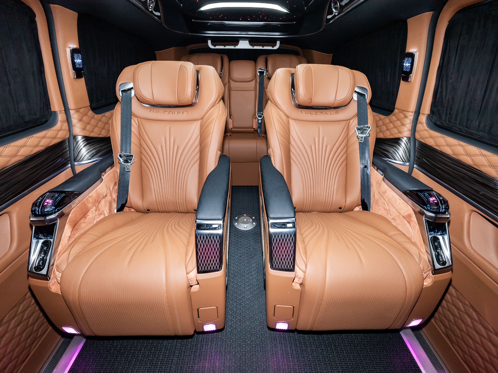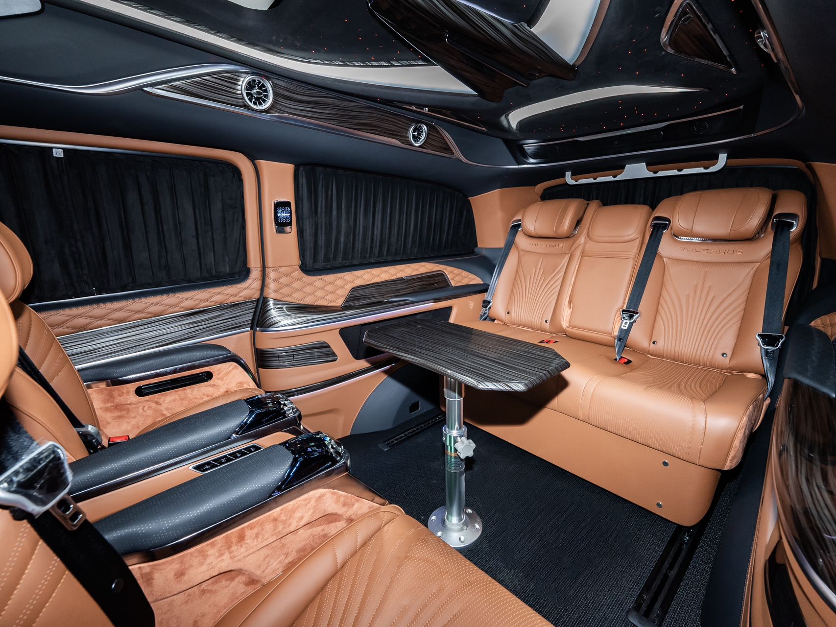 Family-optimized features: The vehicle combines comfort with convenience, featuring a starry ceiling ambiance light that creates a romantic travel atmosphere. A large entertainment screen supports regular movie playback, while the onboard refrigerator stores both baby and parent essentials and keeps champagne chilled. The high-ceiling design accommodates child safety seats and elderly seating, ensuring a comfortable and practical family journey that balances ceremony and functionality.