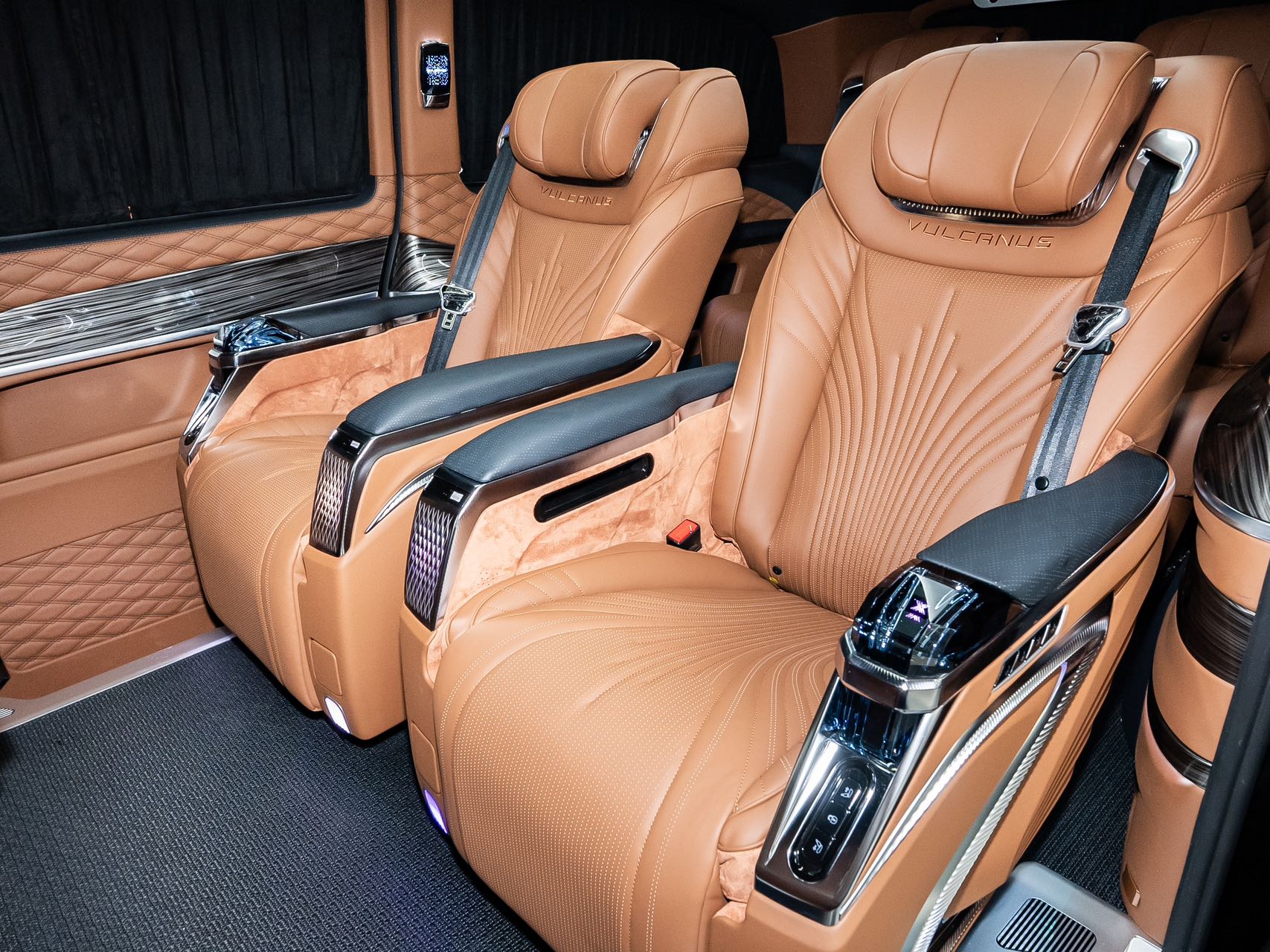 Luxury Seating: Queen-Level Experience with Full-Process Online Monitoring. The second-row “queen-level” aviation seats boast pristine condition—worn-free leather with a soft, velvety touch. Featuring 180-degree seamless rotation and one-touch zero-gravity mode, they operate smoothly without lag. Full functionality includes lumbar support, three-tier ventilation/heating, multi-mode pneumatic massage, and seat position memory. The built-in wireless charging pad ensures stable power, transforming every ride into a cloud-like retreat.